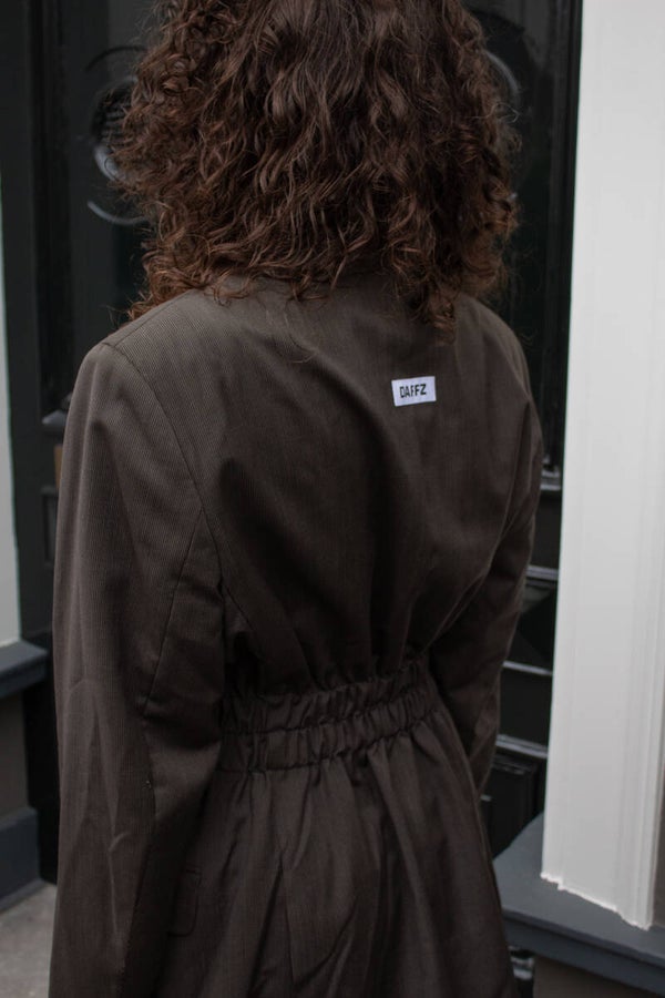 Onesize (verstelbaar) – oorspronkelijk een herenmaat, door de verstelbare taille valt deze blazer als een oversized damesmaat M.