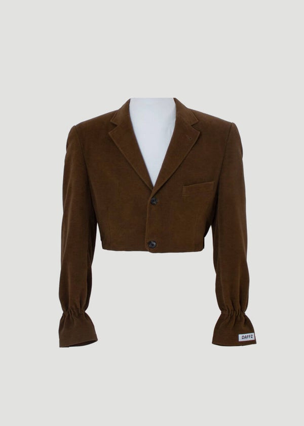 Deze cropped blazer komt in een bruine effen kleur en heeft een getailleerde pasvorm die makkelijk te verstellen is.