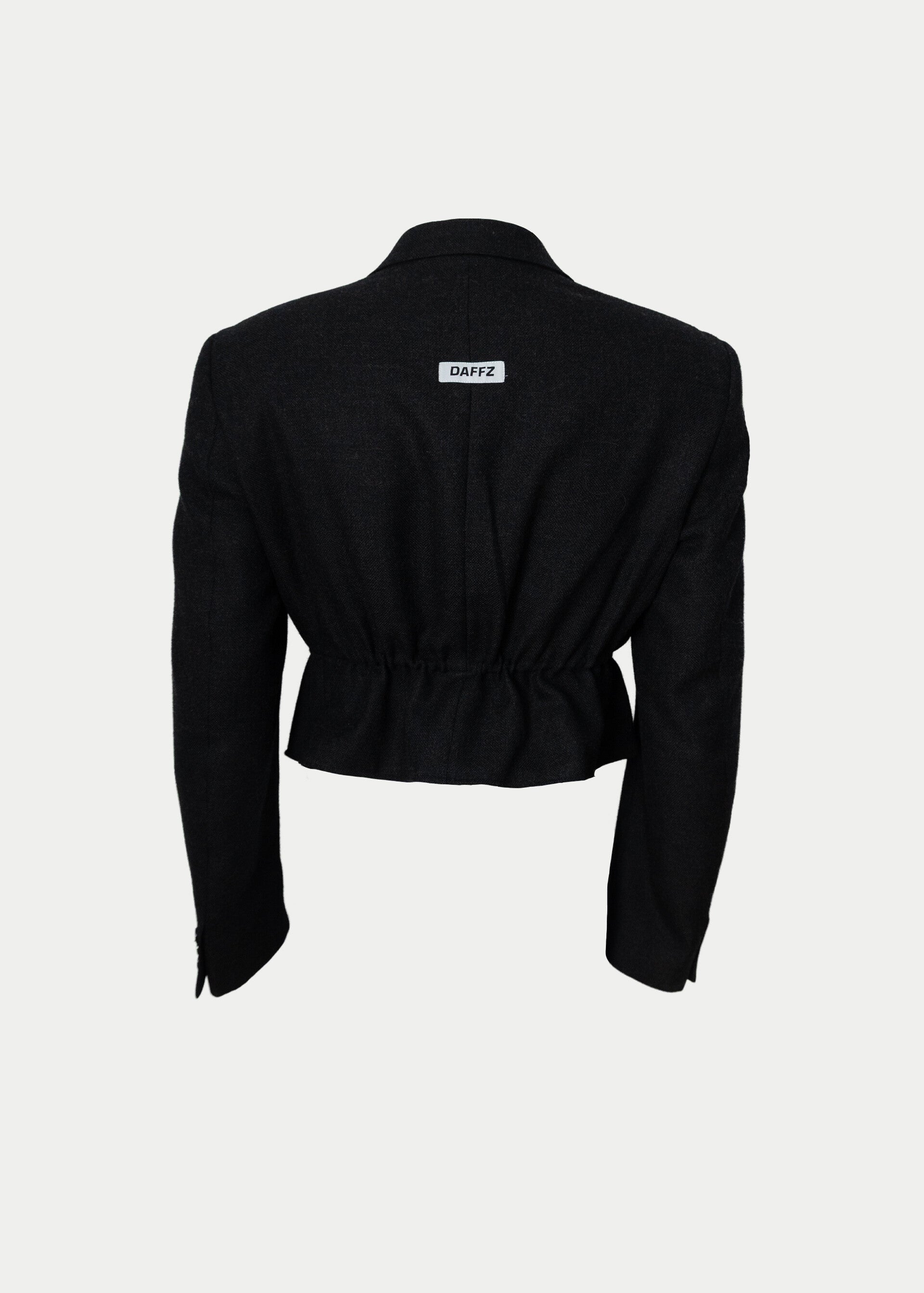 Deze cropped blazer komt in een zwarte kleur van 100% wol en heeft een getailleerde pasvorm die makkelijk te verstellen is.